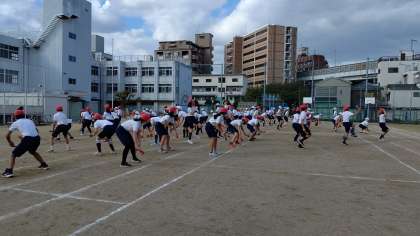 今年の6年生の団体演技は「ヨサコイ」です。例年、組体操で最後を飾りますが、蜜を避けるため、今年は「ヨサコイ」となりました。