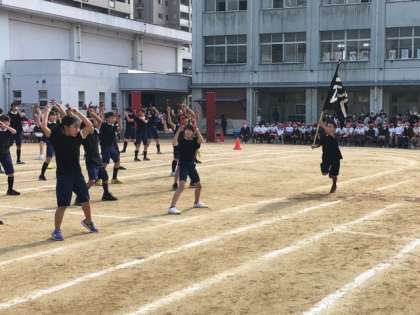 6年生にとって小学校での最後の運動会、この日に向けて練習を積み重ねてきました。団体演技のタイトルは、「田辺舞踏団〜YOSAKOI〜」