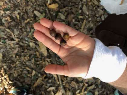 どんぐりや松ぼっくりなど、たくさんの植物を発見しました。
