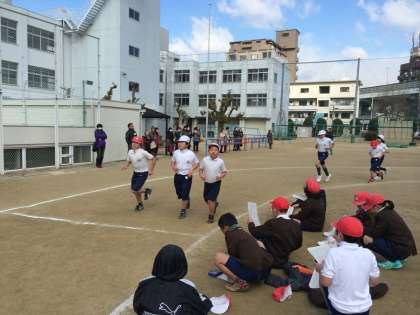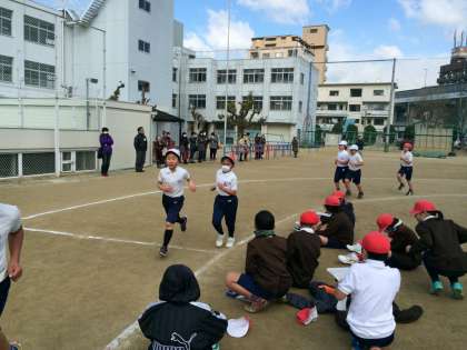 4年生は、2グループに分かれてかけ足大会を行いました。