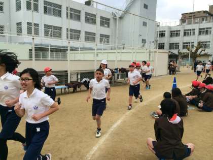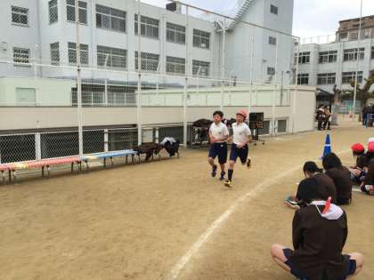 寒さの中、子どもたちは運動場を元気いっぱいに走りました。