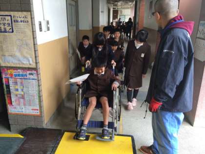 これらのことを学んだうえで、校舎内での車いす体験を行いました。