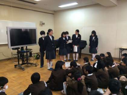そこで田辺中学校の生徒会のみなさんに来ていただき、6年生を対象としてクラブ紹介をしていただきました。