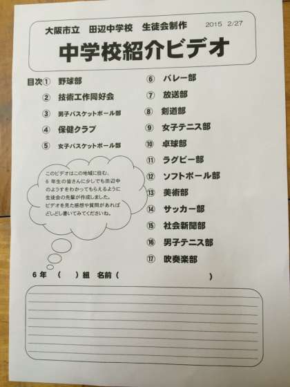 その一つひとつのクラブの内容をビデオにおさめ、それを編集して6年生に見せてくれました。