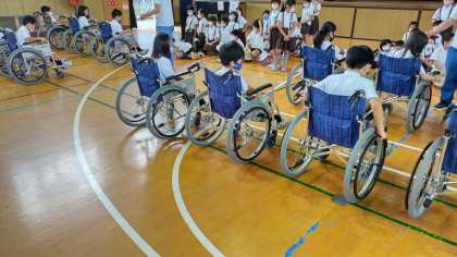 3年生は「大阪市立心身障がい者リハビリテーションセンター」の方々にお越しいただき車いす体験を行いました。