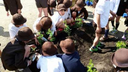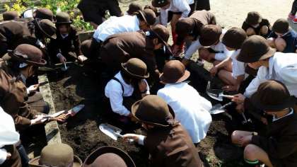 今日は、初めての理科ということで、学習園に行き、みんなで協力して学習園を