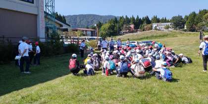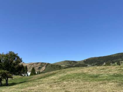 素晴らしい青空のもと、宿の方に挨拶をしました。今からお昼ご飯です。