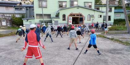 清々しい朝です。ラジオ体操の様子です。