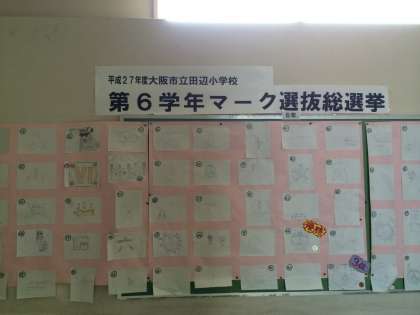 2号階段を上って行くと、「第6学年マーク選抜総選挙」といった掲示がありました。