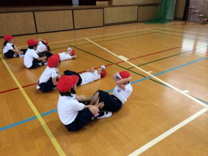 初めて腹筋をする子もいて、思うように体を起こせないで困っていましたが、