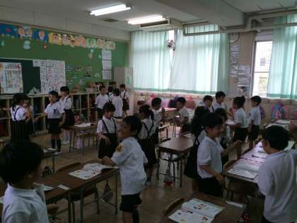 「じゃんけんぽん」の歌を歌い、歌に合わせてみんなでじゃんけんをしました。