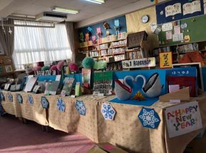 主に、お昼休みの図書開放で本の貸出やよみきかせ、本の整理整頓や本の修理、部屋のかざりつけなどをやっています。