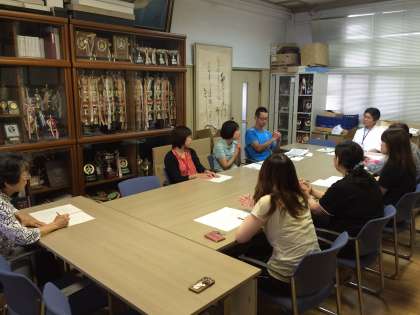民間委託による学校給食を実施するにあたって、業務が適正に行われているかどうかを確認するために、本校では定期的に給食運営委員会を実施しています。今日は、学校、保護者、地域、民間委託業者のそれぞれの代表が会議室に集まり、本校の給食の現状について意見交換を行いました。出席いただいた方々からさまざまなご意見をいただきました。