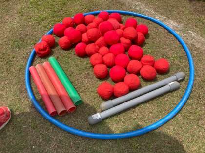 上手にできた人は両手に玉をもって、投げると同時に左手の玉を右手に持ちかえてキャッチするという、難しい動きにもチャレンジしていました。
