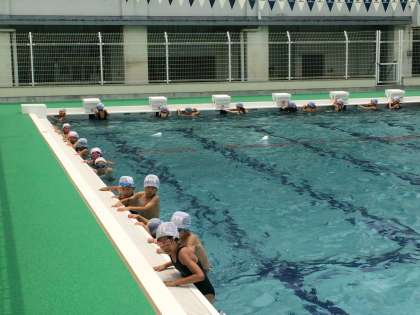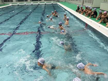 水慣れをしたあと、大プールの壁をつたって、大プール一周を行いました。
