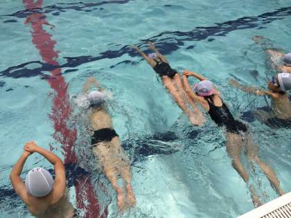 その後、水中ジャンプやけのびなどの練習を行いました。