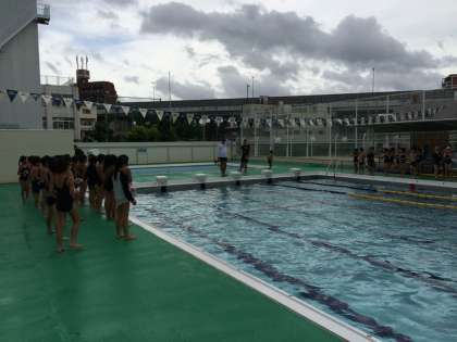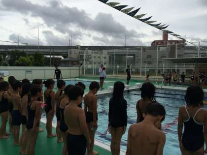 2年生は、元気いっぱいにプールで泳いだ後、整列をして1学期の間お世話になったプールにお礼を言いました。