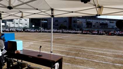 天候もよく運動会日和です。8時50分になったら始めます。いよいよです。