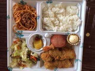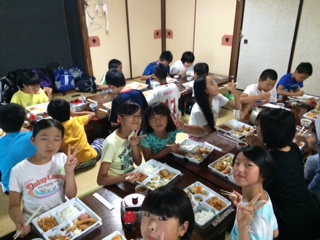 浜から帰ってきて、風呂に入った後は、夕食です。よく泳いだので、子どもたちは食欲旺盛でした!