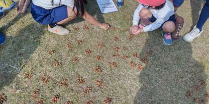 どんぐりを数えています…どのグループも1000個以上拾ったようです!