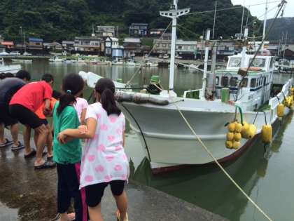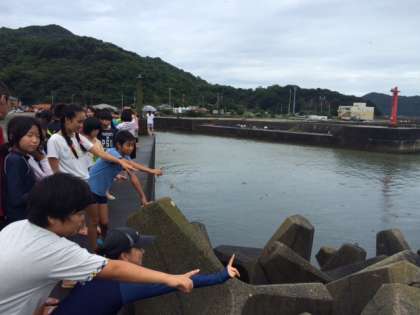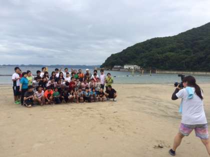 雨が上がったので、宿舎のそばにあるマリーナまで散歩に出かけました。トンボがたくさん飛んでいましま。浜に出て、クラスごとに記念撮影もしました。