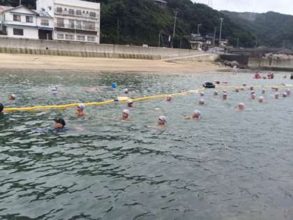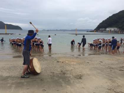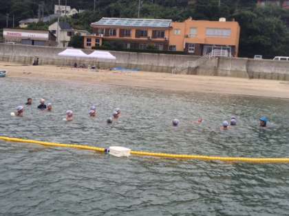 天気が回復したので、浜に出て、明日の1km遠泳に向けた練習を行いました。みんな元気に泳いでいます!