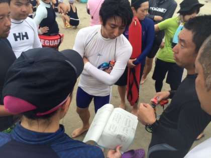 声をかけあいながら、練習が続きます。指導者も安全で楽しい水泳学習になるよう、綿密な打ち合わせをしています。