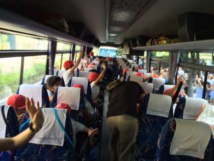 たくさんの方々に見送られてバスは出発しました。3日間楽しんできます!
