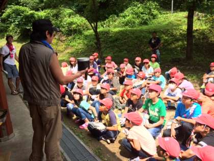 次の活動は、飯ごう炊はんです。宿舎のご主人からカレーの作り方の説明をよく聞いて、昼食になるカレーライス作りのスタートです。どの班が一番おいしいカレーができるかな?