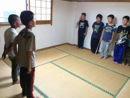 入浴を待っている間は、キャンプファイアーのスタンツの練習の時間です。各部屋で練習に励んでいます。