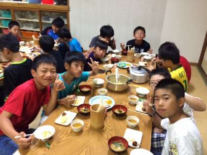 「いただきます」の後は、あっという間に完食。今日もみんな元気です!今回も食事係が準備してくれました。