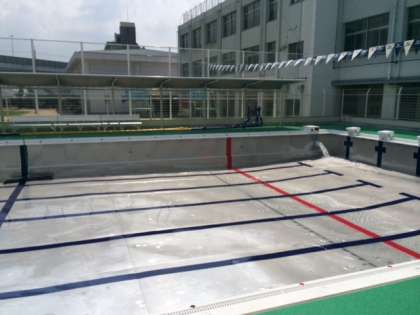学校では、大プール、小プールとも水を抜き、プール清掃を行いました。
