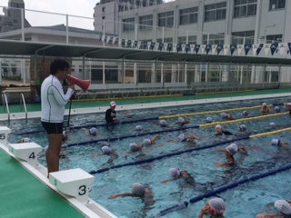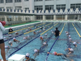 夏休みもたくさんのこどもたちが学校に来て、水泳練習に取り組んでいます。