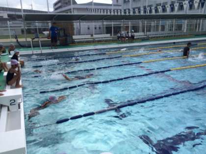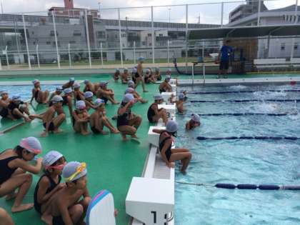 まずは、2年生が水泳記録会・プールおさめを行いました。