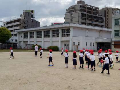 1年生の体育科の学習の様子です。遊具を使った運動や折り返し走など、運動場や体育館でいろいろな運動に楽しそうに取り組んでいました。