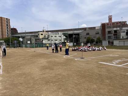 1・2年生を対象にした、歩行の交通安全指導を行いました。東住吉警察署の交通安全課の方に来ていただき道路での歩く時のルールについて教えていただきました。道路を歩くときには必ず左右を確認することや信号をよく見て歩くことなど事故に合わないためにどうすればいいかを考えることができました。自分の身を守るためにもこの経験を普段の生活に生かしてほしいと思います。