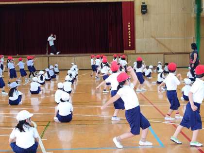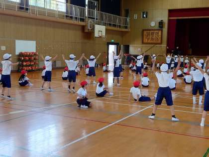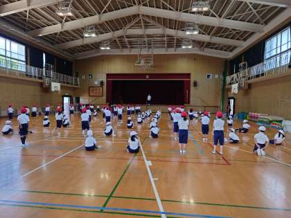 昨日より、5月28日の運動会に向けて、各学年練習を始めました。1年生の団体演技の練習の様子です。先生の説明をしっかりと聞いて練習に取り組んでいました。