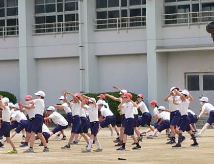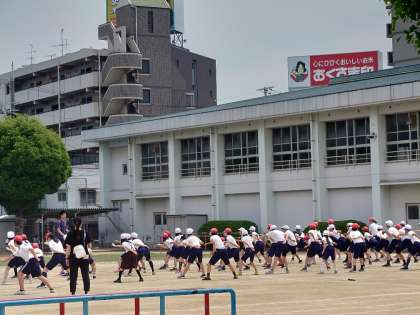 6年生の団体演技の練習の様子です。小学校生活最後の運動会です。精いっぱいの力を発揮してほしいと思います。