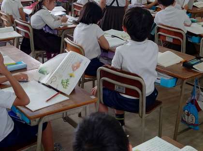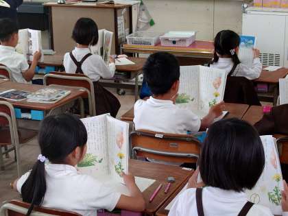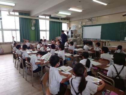 2年生の国語科の学習の様子です。発言している友だちに顔を向けて聞くことができている人がたくさんいました。音読も担任の先生が読んだあとを、大きな声で読んでいくことができました。