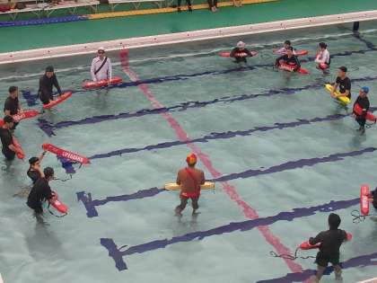 放課後、教職員の水難救助研修を実施しました。子どもたちと教職員の命と安全を守るための研修です。毎年実施していますが、気持ちを新たに研修を深めています。