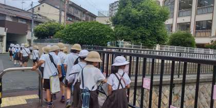 今日は校区たんけんに行きました!今川グループと山阪グループにわかれて散策しました。色々なお店や自然などを発見してきました!2年3組の子にインタビューすると「楽しかった!」と嬉しそうに答えてくれました。