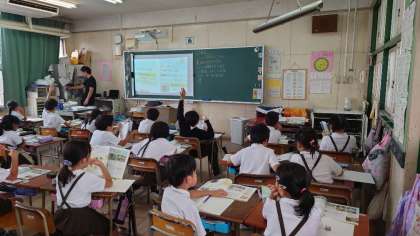 今日は、3年生の社会科の学習の様子です。パン工場では原料をどんなふうに仕入れているかということから、流通や外国とのつながりを学習していました。