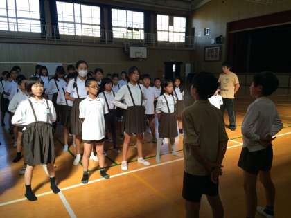 運動場を駆け回り、元気いっぱいに大声を出して運動会を盛り上げてくれた応援団ですが、今日は講堂で応援団の解散式を行いました。