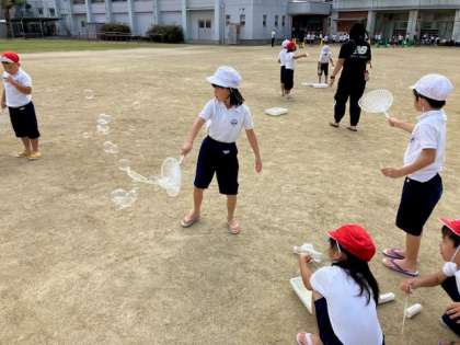 生活科の学習で、水遊び・シャボン玉遊び・どろ遊びをしました。