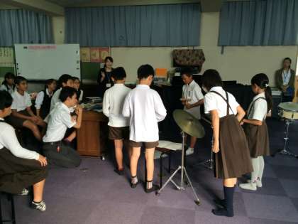 各グループで様々な楽器を使い、リズムに合わせて演奏を考えました。