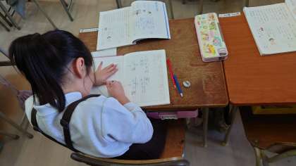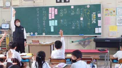2年生の国語科の学習の様子です。主語と述語について学習しました。みんな元気いっぱいで、自分の意見を発言したり、たいへんていねいな字でノートを書いていたりして感心しました。