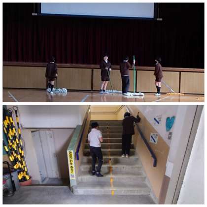 先週に引き続き、今週も清掃強調週間でした。普段目の行き届かないところを掃除したり、普段以上に分担場所をていねいに掃除しています。美化委員会の人たちがきちんと掃除できているかチェックしてくれます。強調週間で気づいたことを今後生かしてもらえるとうれしいですね。