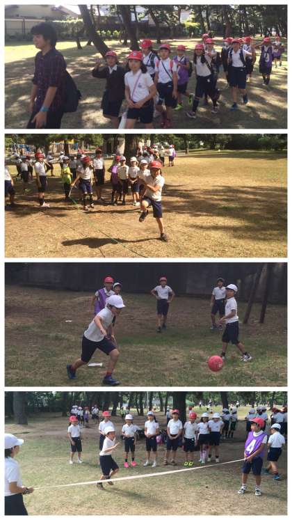 3・4年生は浜寺公園へ、遠足に出かけました。とてもいい天気で、絶好の遠足日和でした。公園に着いてからは、3・4年生混合のグループ10班に分かれて、園内で活動しました。遠足に行く前日までにグループで集まり、「何をして遊ぶか」「何を持って行くか」を考えてから行きました。公園では、たくさんの遊具のほかに、大なわやおにごっこ、ドッジボールなどをして、グループでなかよく遊んでいました。昼食もグループでとりました。暑い一日でしたが、元気いっぱい過ごすことができました。