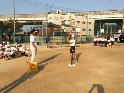 コーチに打ち方を教えてもらい、遠くまでボールを飛ばす子どもたちもたくさんいました。
