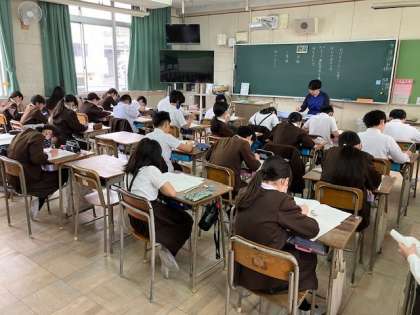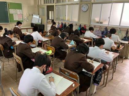 1時間目に国語科、2時間目に算数科のテストに取り組んでいます。
